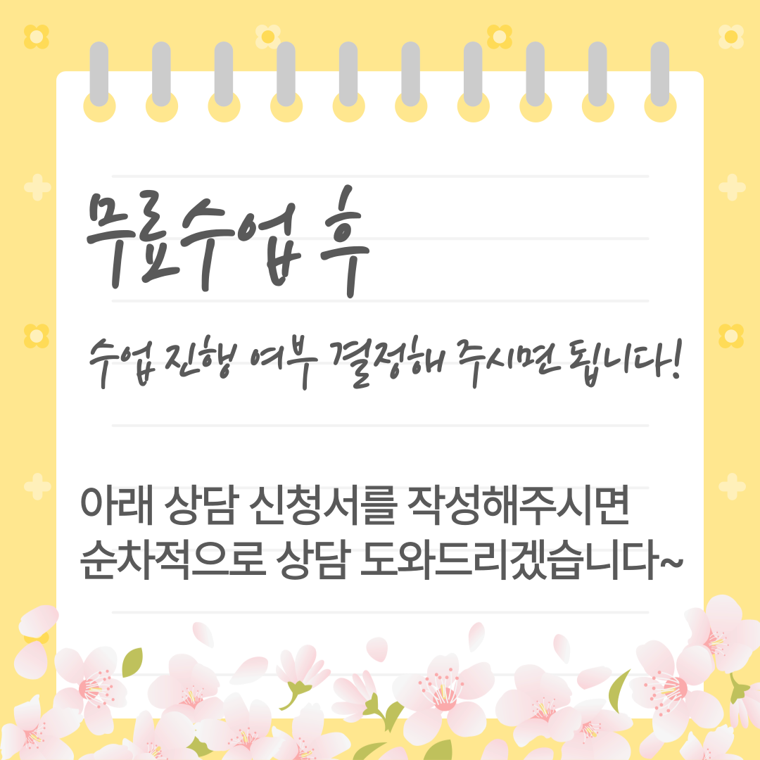 학부모에게 아이 학습 문제는 언제나 고민과 선택의 연속입니다. 눈앞의 비용과 당장의 편의성만으로 판단하기보다는, 아이가 어떤 환경에서 더 자연스럽게 배우는지를 먼저 관찰하는 것이 중요합니다. 그러한 시선이야말로 수업의 효과를 장기적으로 끌어내는 원동력이 됩니다.